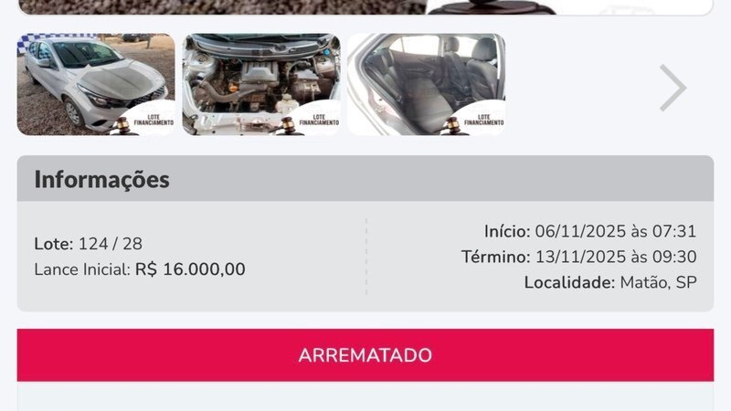 No dia 13 de novembro de 2025, participei de um leilão organizado pela empresa RIZZI LEILÕES, com o objetivo de adquirir um veículo para uso pessoal. Fui declarado vencedor do lote nº 28, referente ao seguinte automóvel: