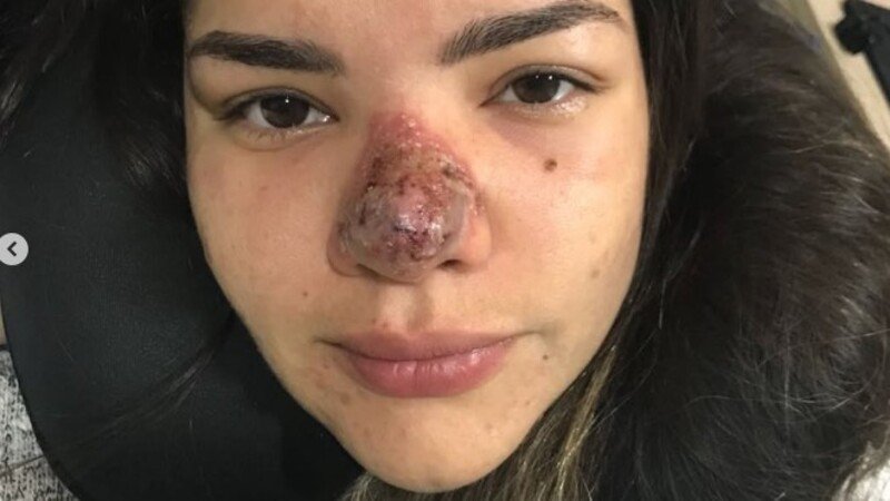 Eu sou Priscilla Aguiar, jornalista, e sofri uma necrose no nariz após um preenchimento com ácido hialurónico. Desde então, tenho partilhado a minha experiência e alertado sobre os riscos de procedimentos estéticos através da página @esteticaderisco.